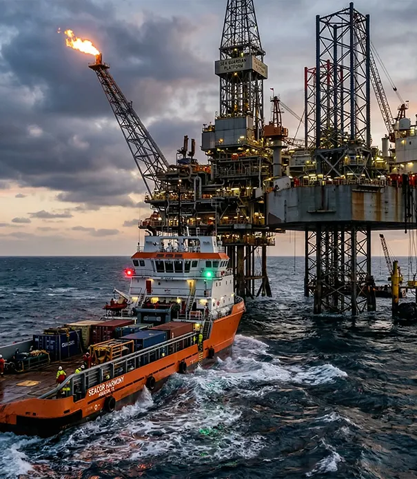 We offer reliable offshore logistics coordination ensuring the safe transportation of personnel, equipment, and materials to offshore installations.